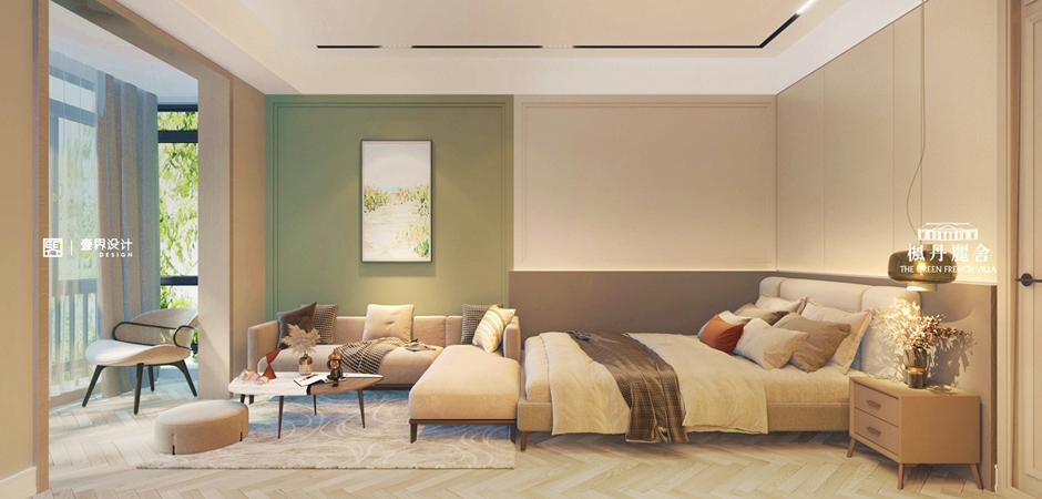 法式的优雅邂逅现代的清爽干净,灰绿色调与极简的线条奠定了空间精致、内敛的格调。灰色墙面在石膏造型的点缀下营造出高级冷静的气质,整体效果和谐,清新而舒适,搭配现代风的简约家具散发出理性的空间形态。